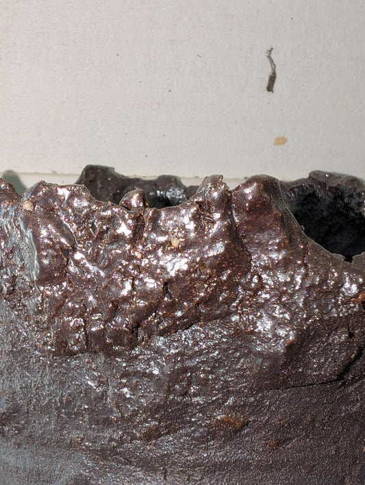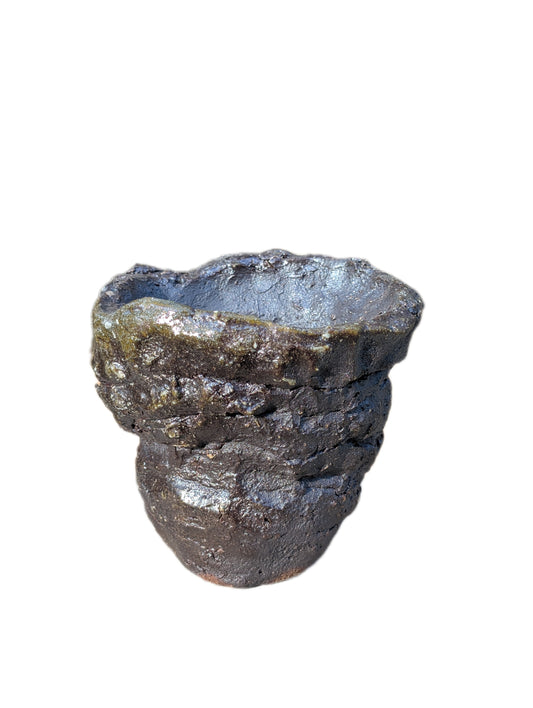 Piece 1,697 – Ash-Glazed Wild Clay Vessel with Metallic Crust