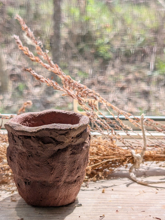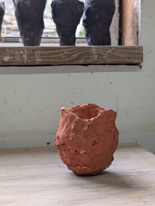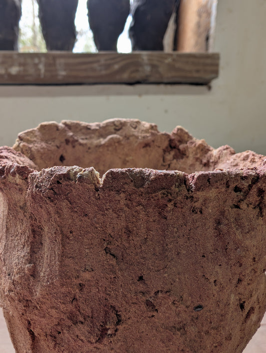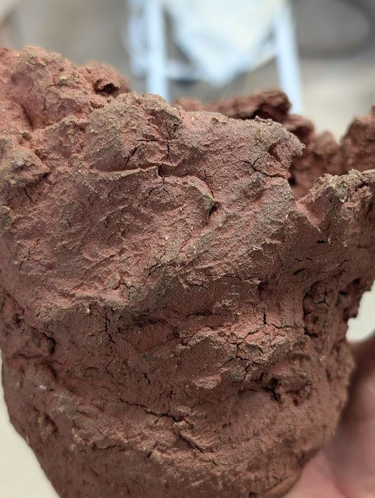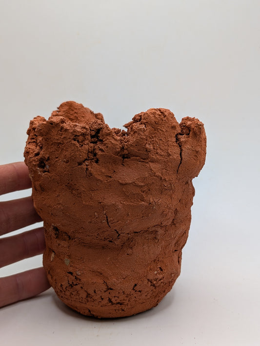 Piece 1,694 – Wild Red Clay Sculptural Vessel with Eroded Rim