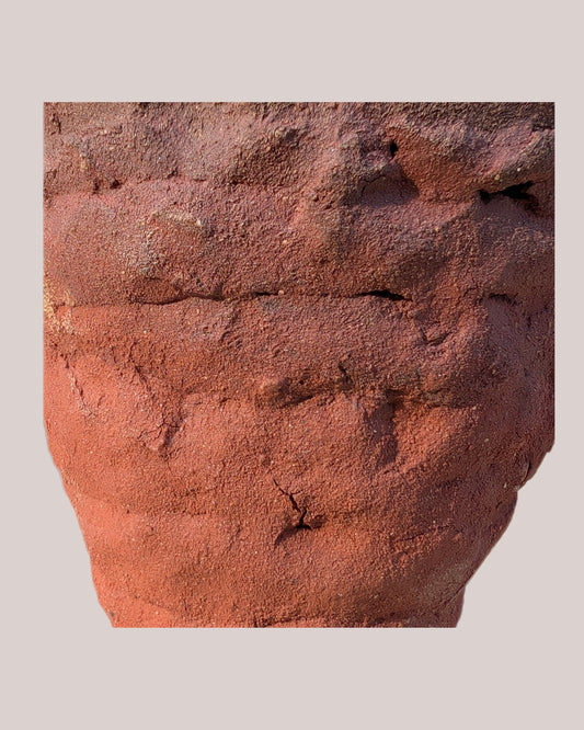 Piece 1,699 – Wild Red Clay Vessel with Layered Ridge Pattern