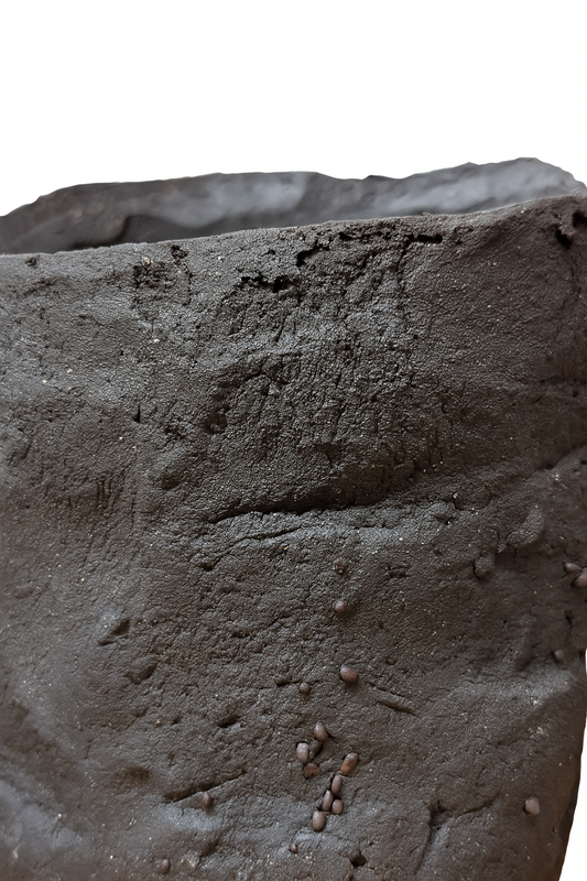 Handmade Black Stoneware Vessel – Raw Sculptural Texture: Ceramic Piece 1737