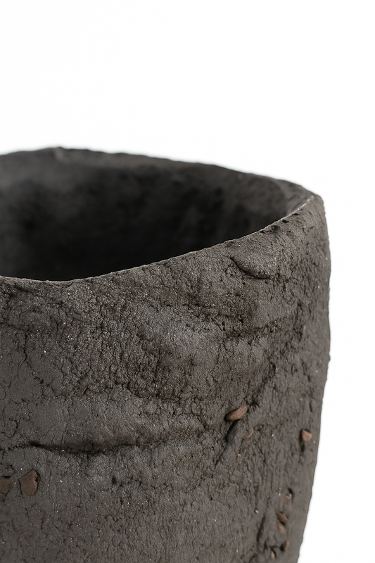 Handmade Black Stoneware Vessel – Raw Textured Form: Ceramic Piece 1730