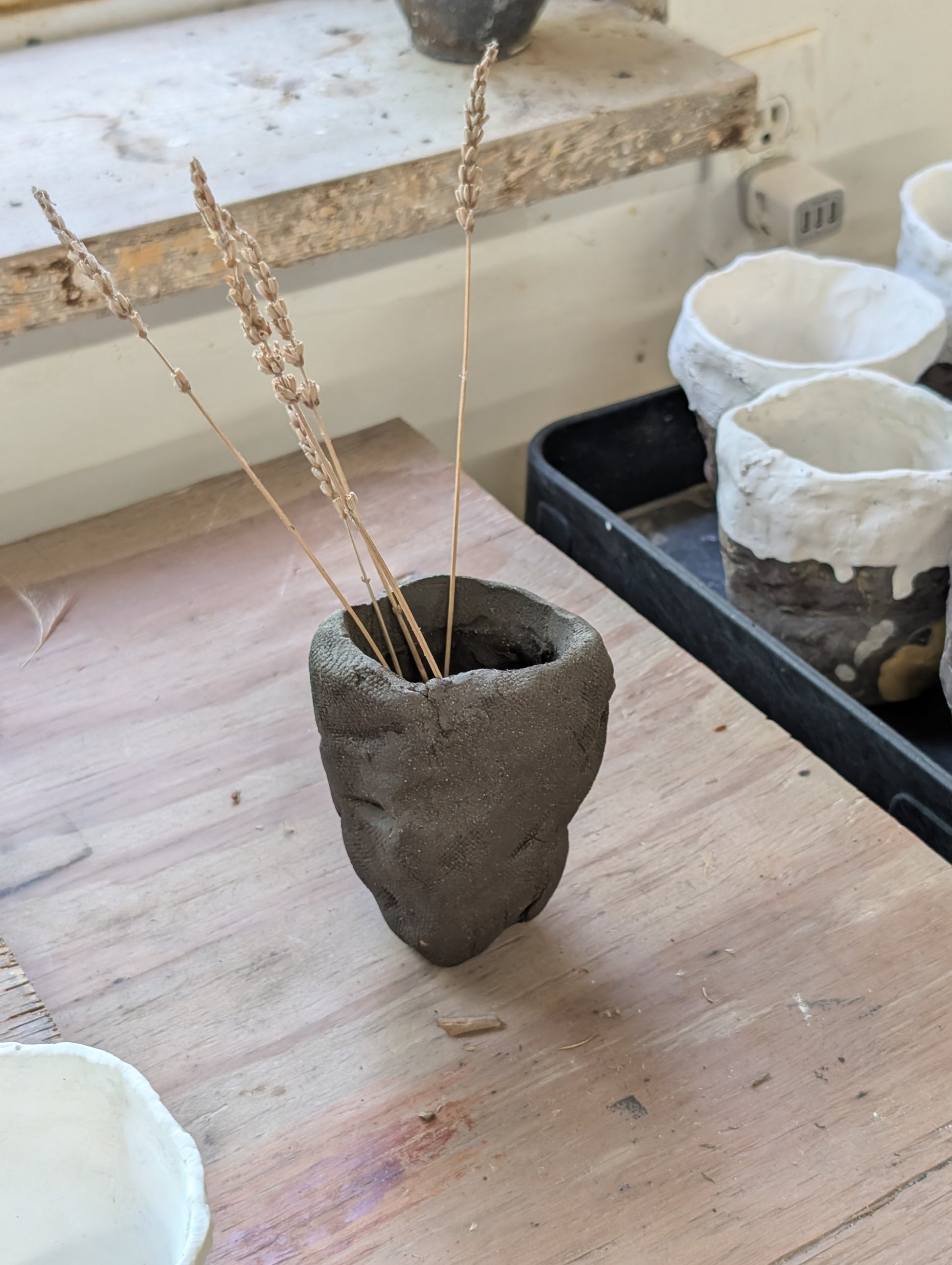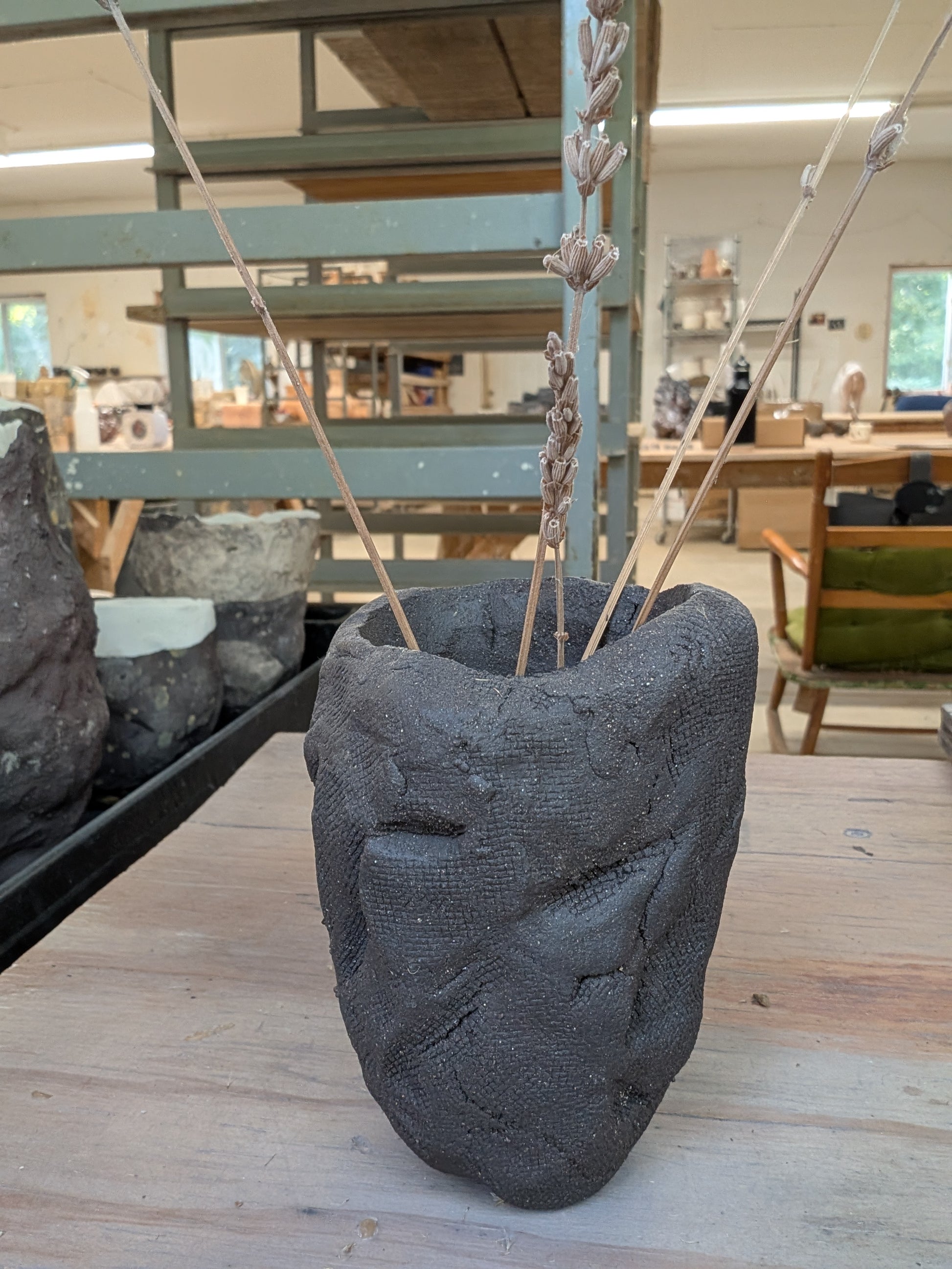 Black Hand built Clay Dry Flower Vase: Ceramic Piece 1757